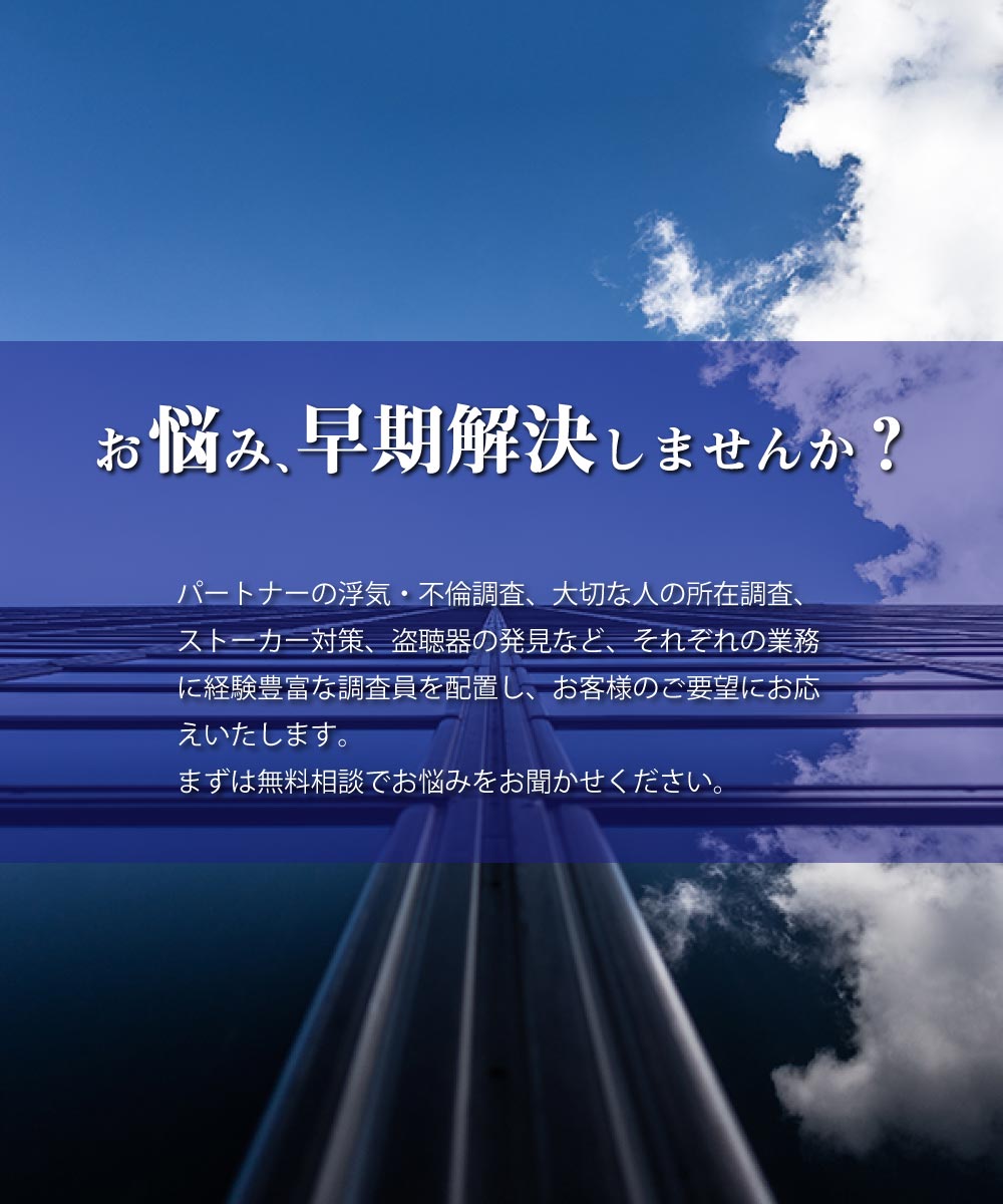 普段馴染みのない探偵へのご相談が初めての方は何かと不安も多いかと思います。